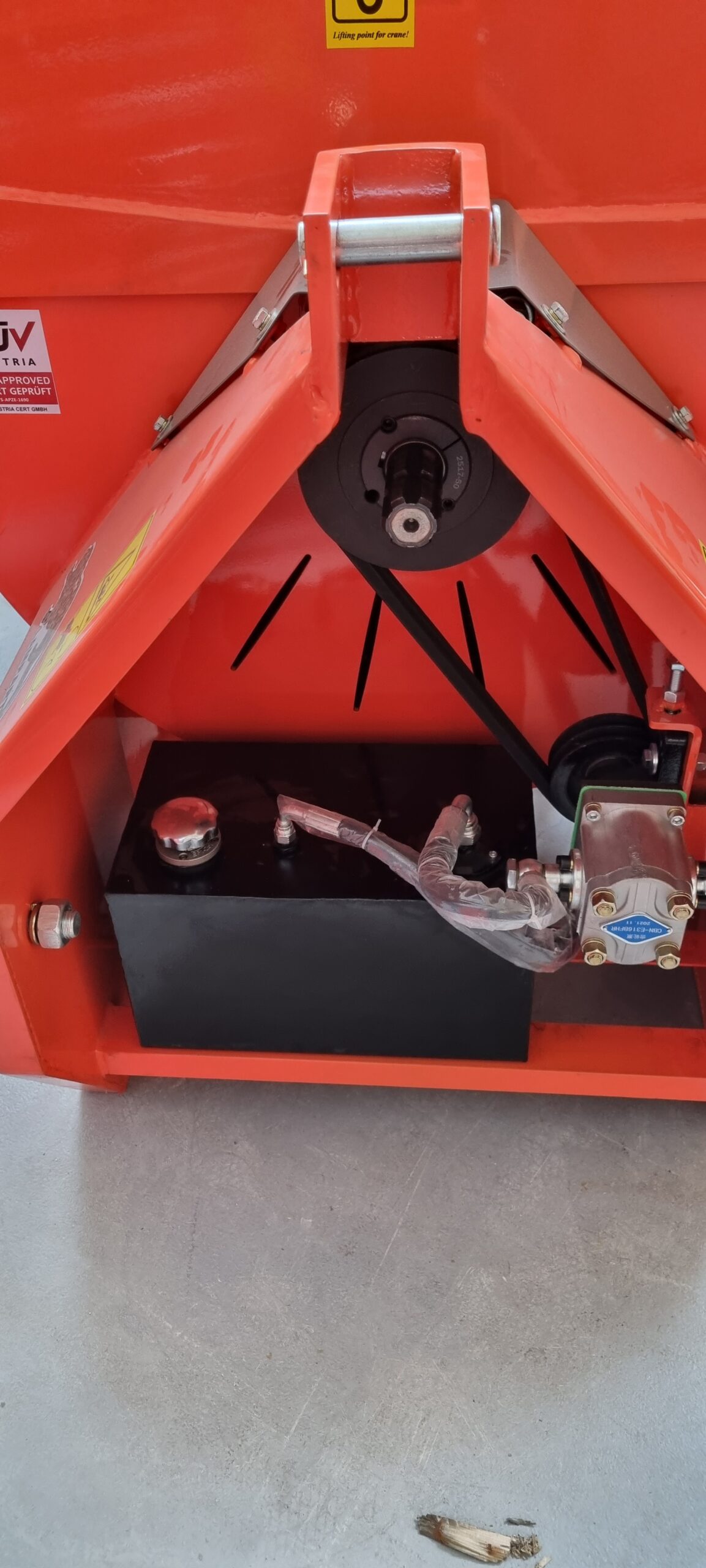 Napęd układu hydraulicznego zasilany jest za pomocą pompy zamontowanej w rębaku.