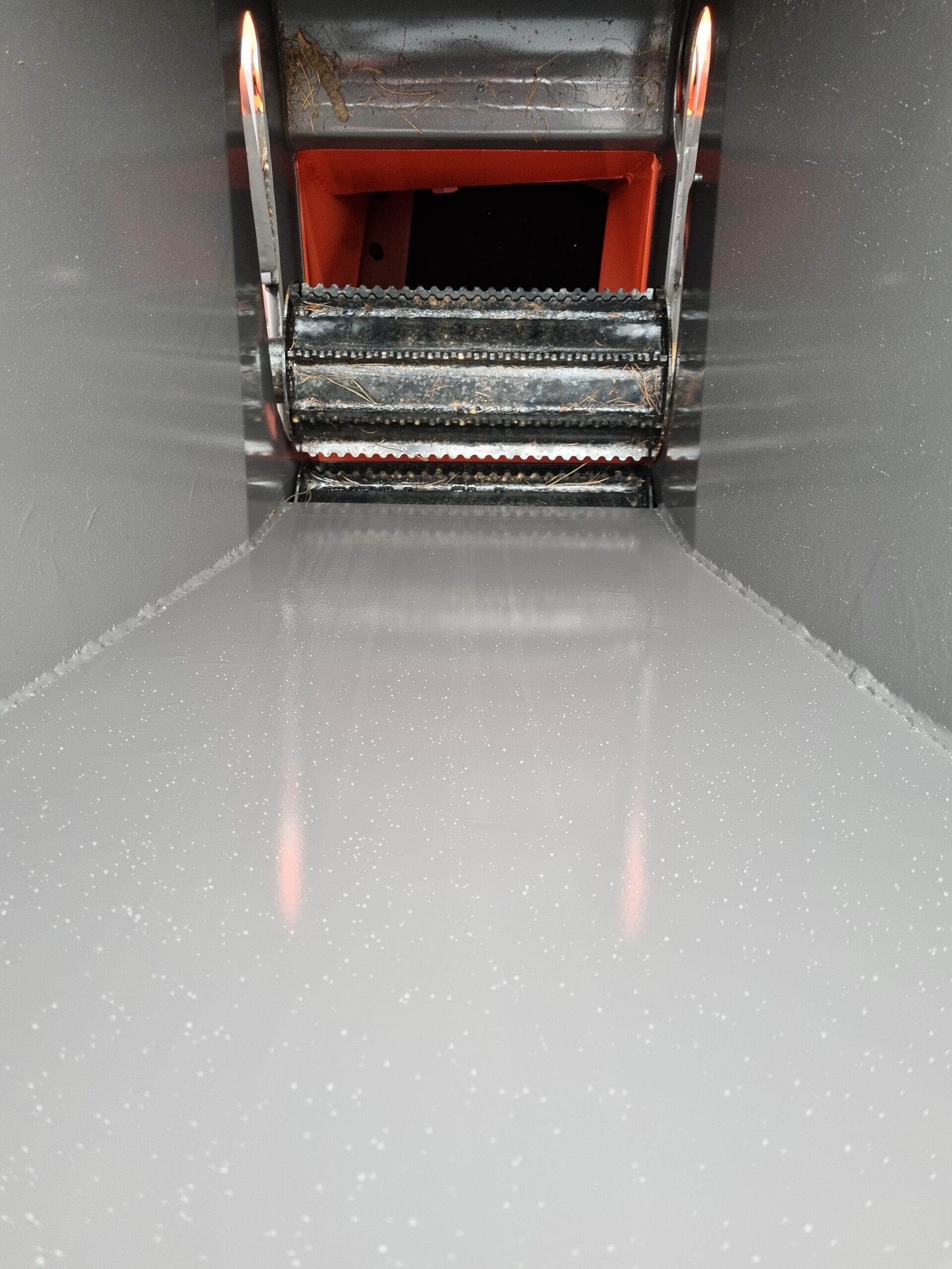 Mechanizm podawania materiału: Napęd hydrauliczny z własną wbudowaną pompą – 2 wałki zębate
